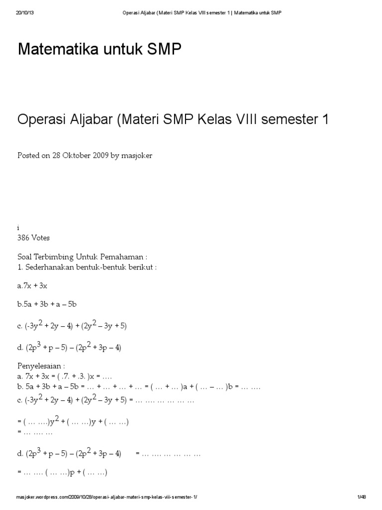 / Soal Aljabar Kelas 8 / Kisi Kisi Soal Bentuk Aljabar Kelas 7 Jawabanku Id / Pelajari cara memecahkan soal matematika, memerika pekerjaan rumah dan belajar untuk menghadapi ujian dan act/sat yang akan datang dengan sumber ….