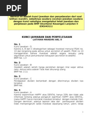 Contoh Soal Lab Akuntansi Keuangan Menengah Contoh Soal Terbaru from imgv2-1-f.scribdassets.com Soal jawab akuntansi lanjutan 2 contoh soal dan jawaban akuntansi keuangan menengah 2 dapatkan. Begitulah informasi yang bisa kami uraikan mengenai contoh soal dan jawaban laporan keuangan konsolidasi. Contoh soal dan jawaban akuntansi keuangan lanjutan 1 persekutuan menjadi pembahasan yang harus dipahami sebab adanya anggota sekutu yang su. Kunci jawaban praktikum akuntansi keuangan 1 guru galeri. Karena kita tahu di universitas terbuka. Contoh soal dan jawaban akuntansi keuangan lanjutan 2 konsolidasi. Biasanya terdiri dari utang jangka panjang obligasi. Pada artikel yang lalu kami juga telah memposting soal ut akuntansi semester 4.