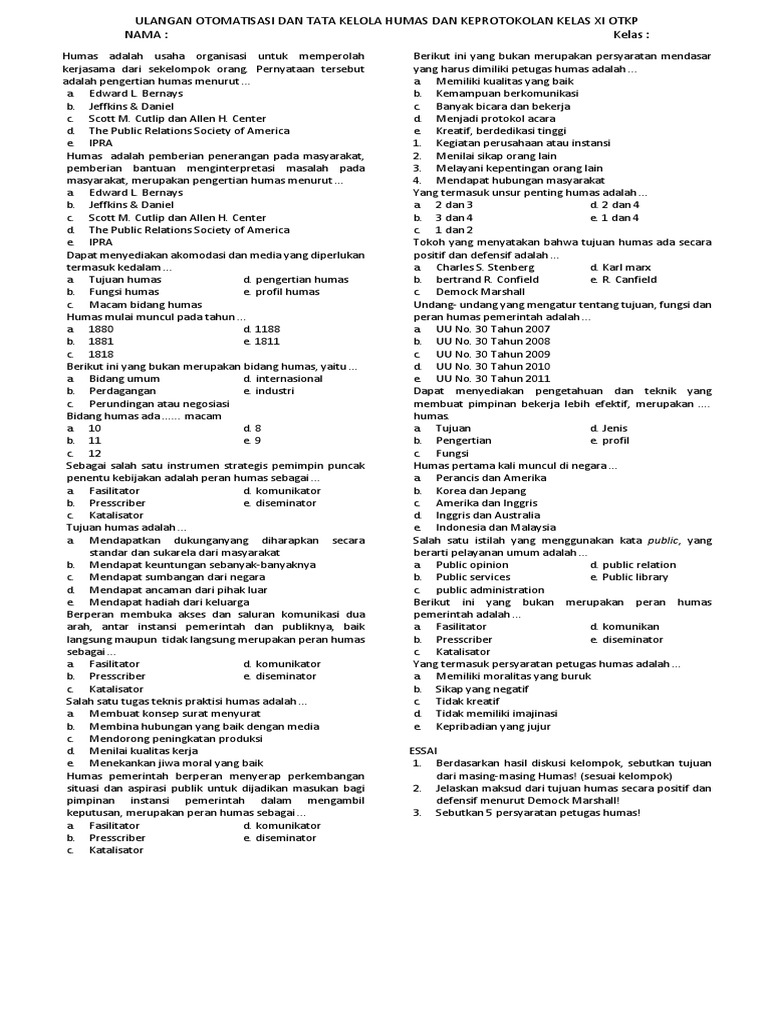 Soal Uts Xii Ap Otomatisasi Tata Kehumasan Dan Keprotokolan from imgv2-1-f.scribdassets.com Soal dan jawaban humas dan keprotokolan kelas xi semester 1. We did not find results for: Maybe you would like to learn more about one of these? Check spelling or type a new query.